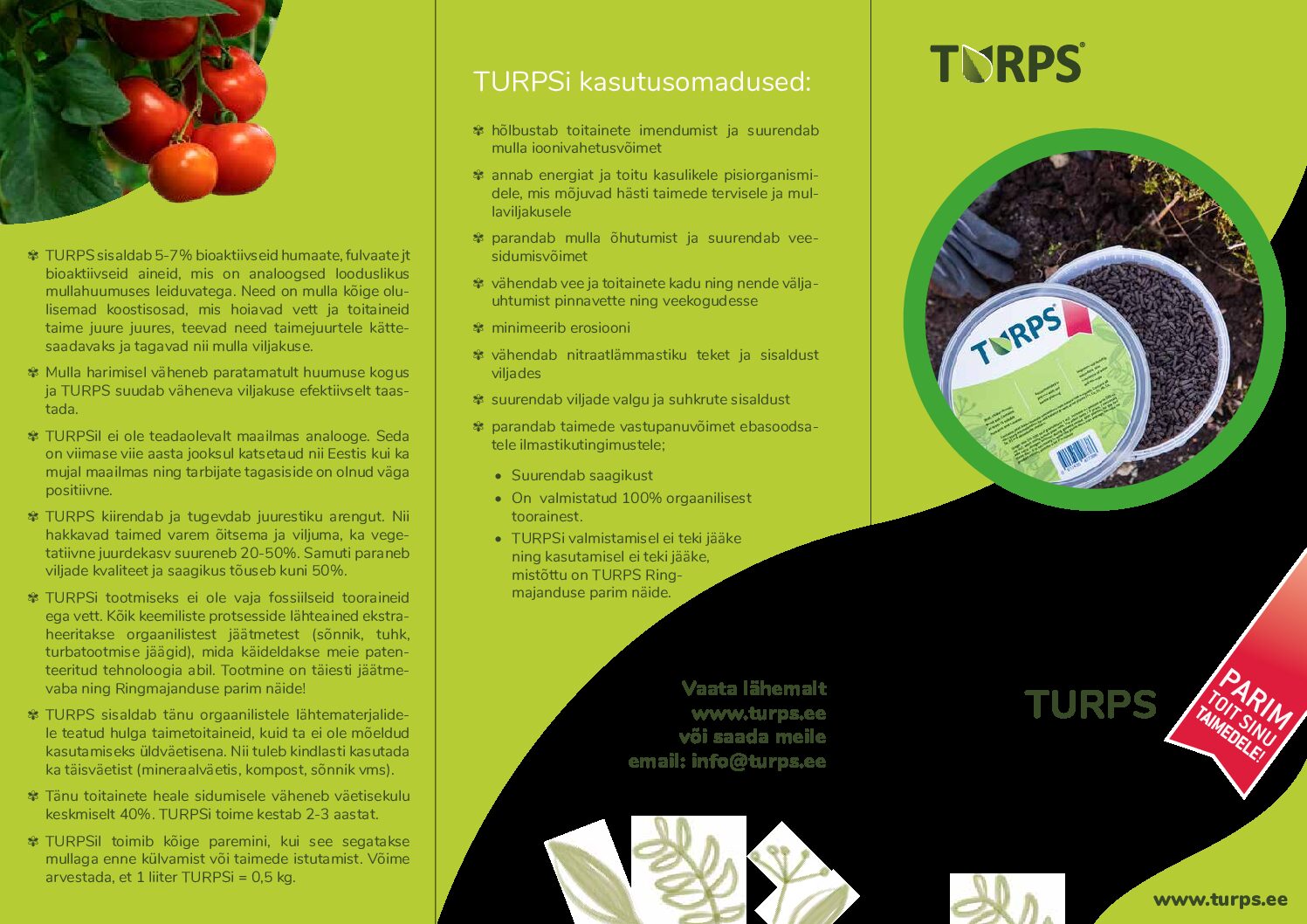 TURPS orgaaniline humaatväetis on Eestis valmistatud ja patenteeritud unikaalne looduslik mullaparandaja, mis põhineb peamiselt mustal turbal, kanasõnnikul ja puutuhal. Granuleeritud mullaparandaja sisaldab vähemalt 5% lahustuvaid humaate ja fulvaate, aidates parandada mulla tervist ja toitaineomastamist. TURPS-i graanulid on mõeldud kasutamiseks istutamise ja külvamise ajal.